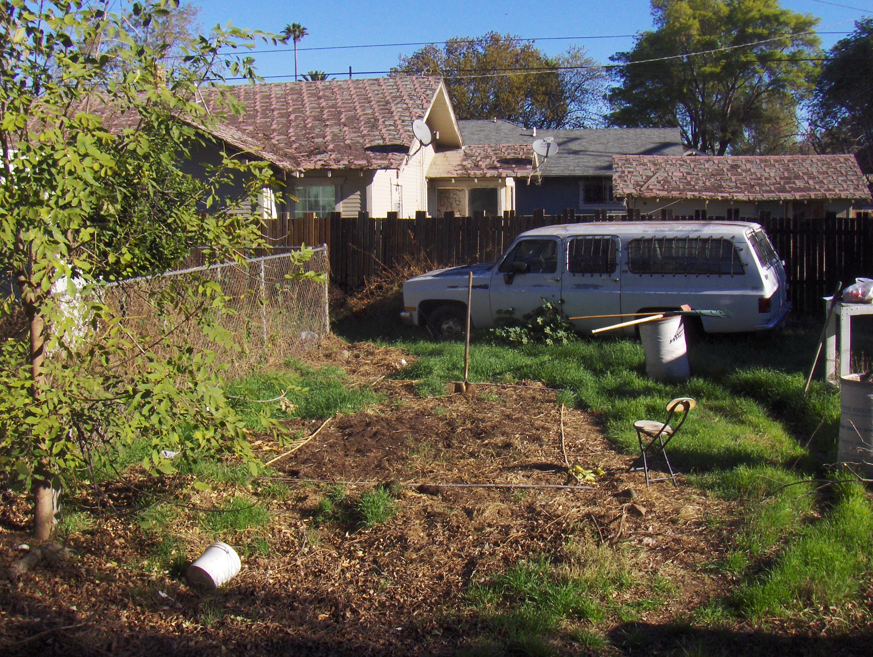 a gardening magazine and invite them over for a photoshoot? This view is from the backdoor of the house. My truck is not running at this time, so you will notice that in all the pictures, it never, ever moves. This site is where the old barrel garden was located. |