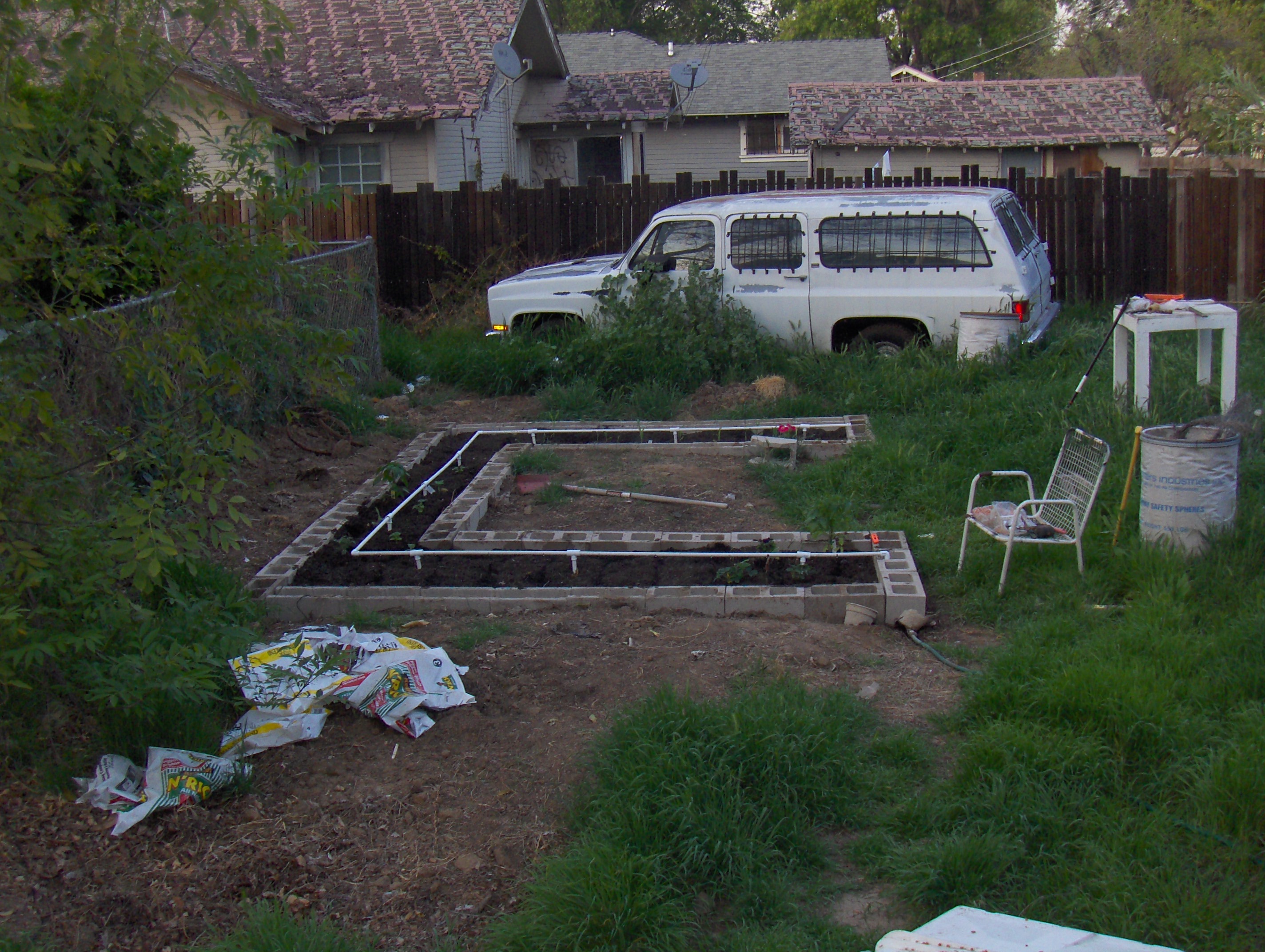 at the beginning of this adventure. Again, the original plan was to put decorative caps on the tops of the concrete blocks, and a brick patio type floor in the middle . . . |