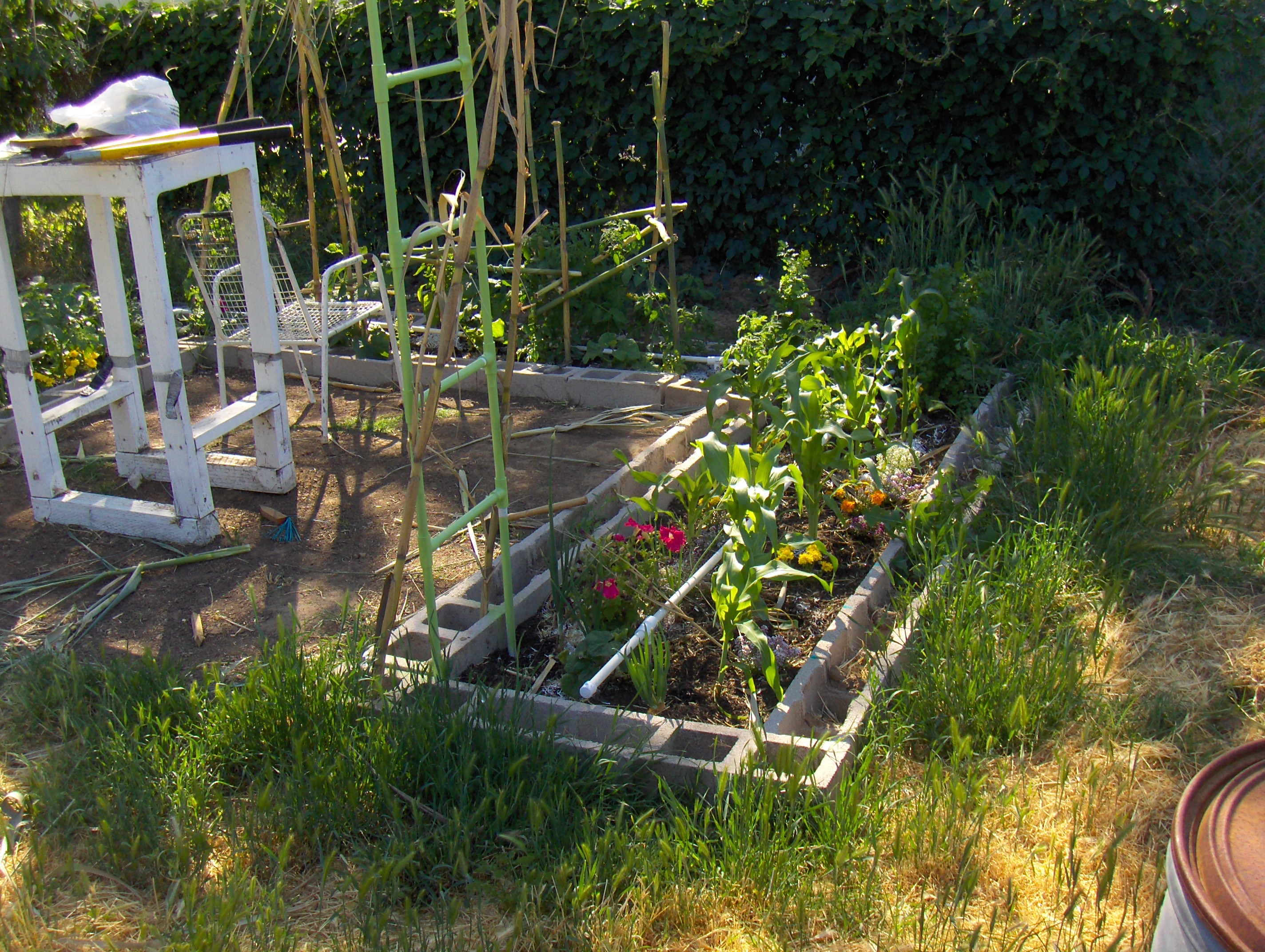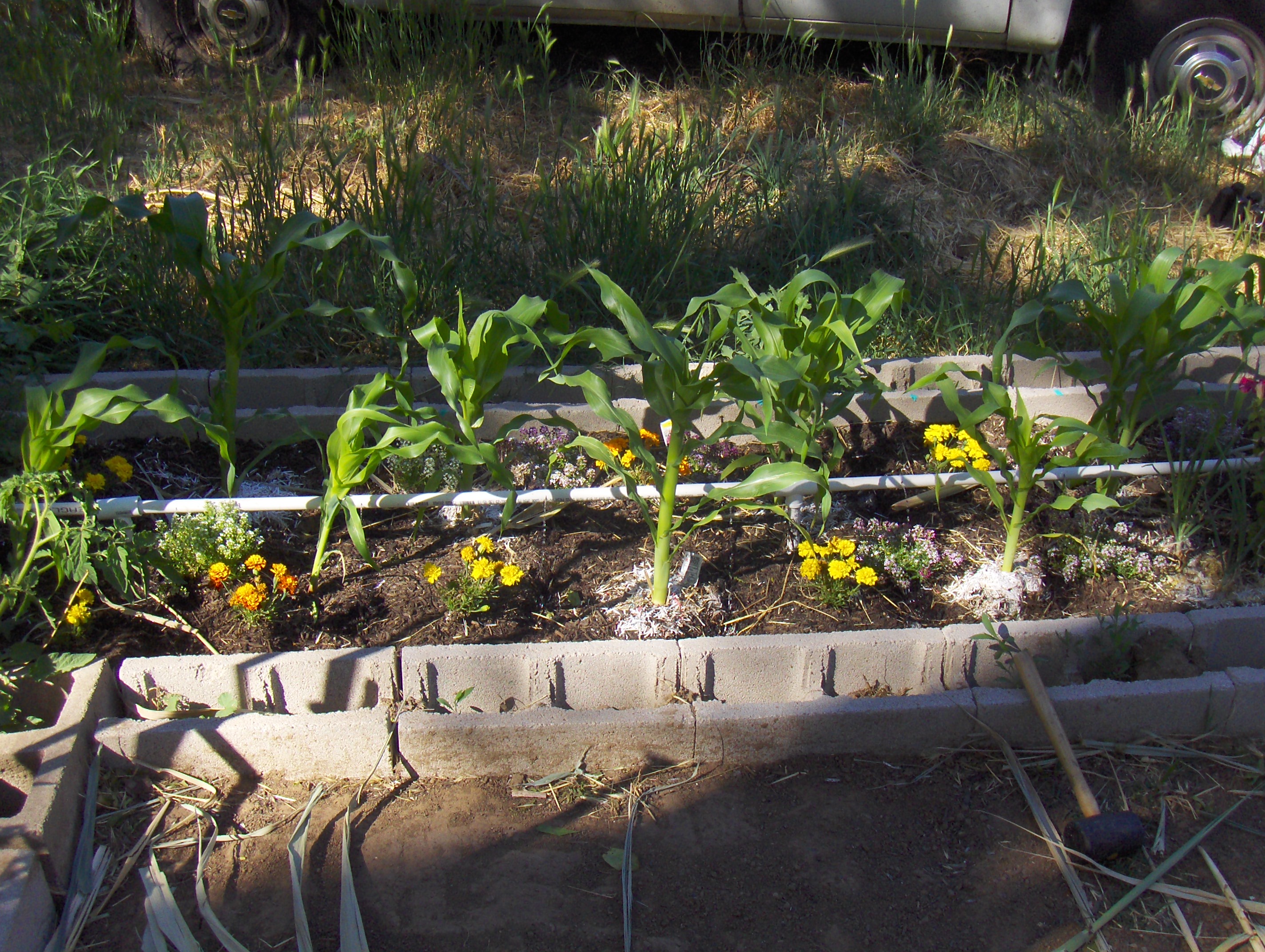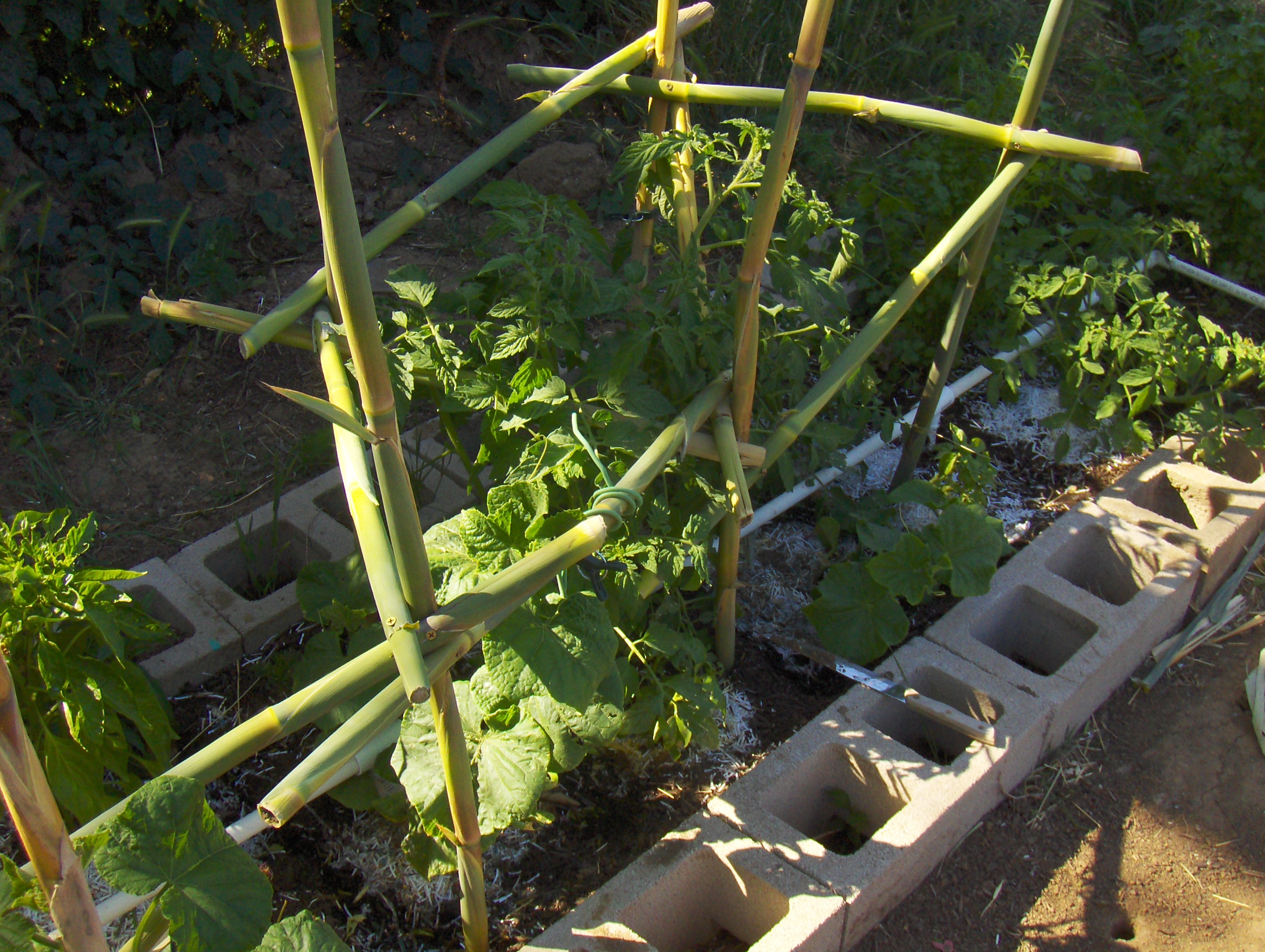 I tried to plant the tomatoes and the cucumbers in their own one square foot sections, but they began to grow